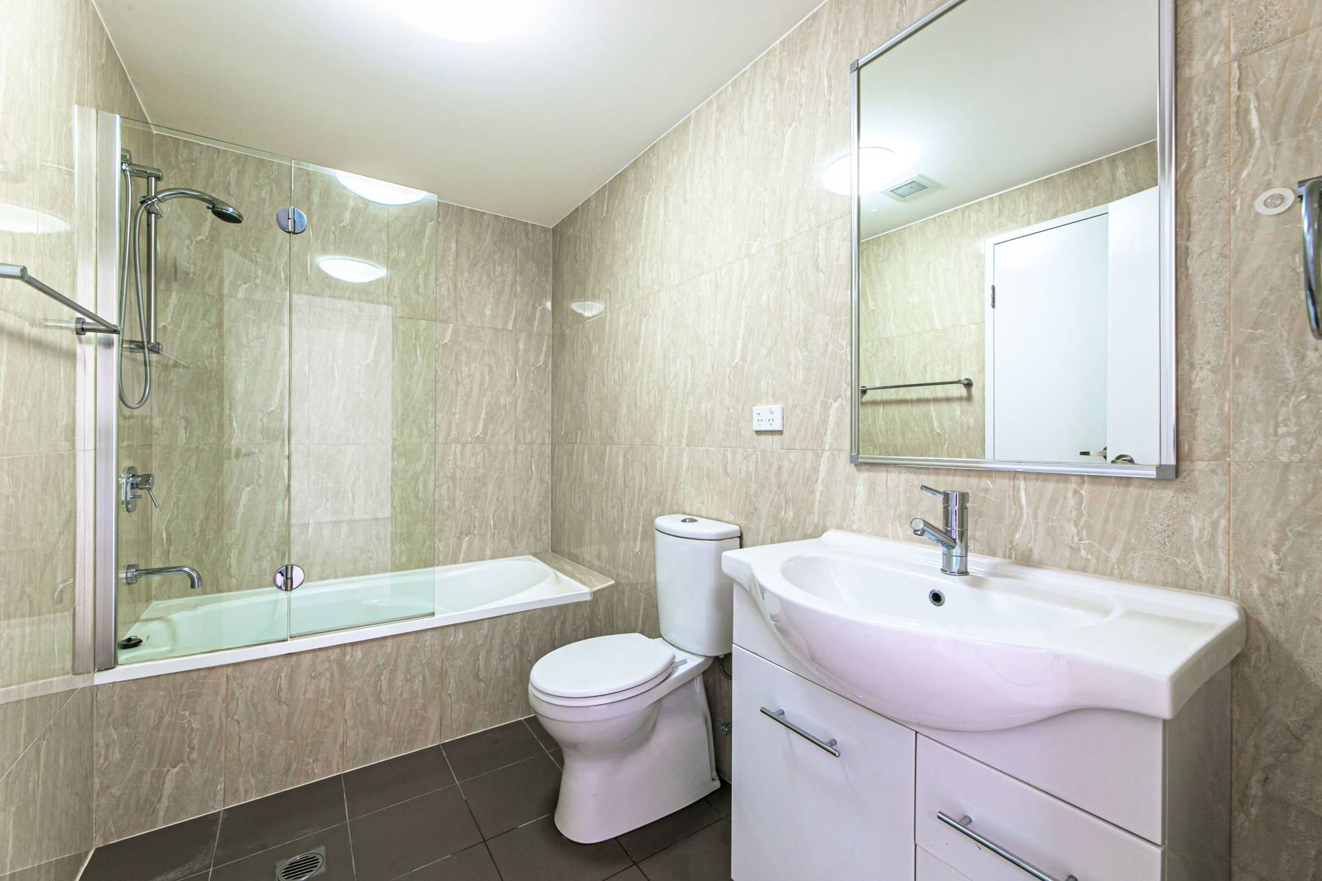 • Functional bathroom with a combined shower and bath